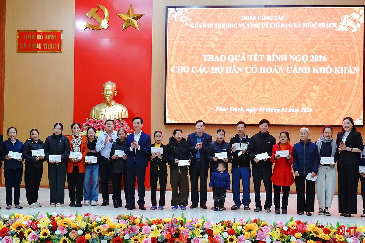 Trước đó, Phó Chủ tịch Thường trực UBND tỉnh đã trao 40 suất quà của Đoàn công tác Ban Thường vụ Tỉnh uỷ chỉ đạo xã Phúc Trạch cho các hộ gia đình có hoàn cảnh khó khăn tại xã Phúc Trạch.