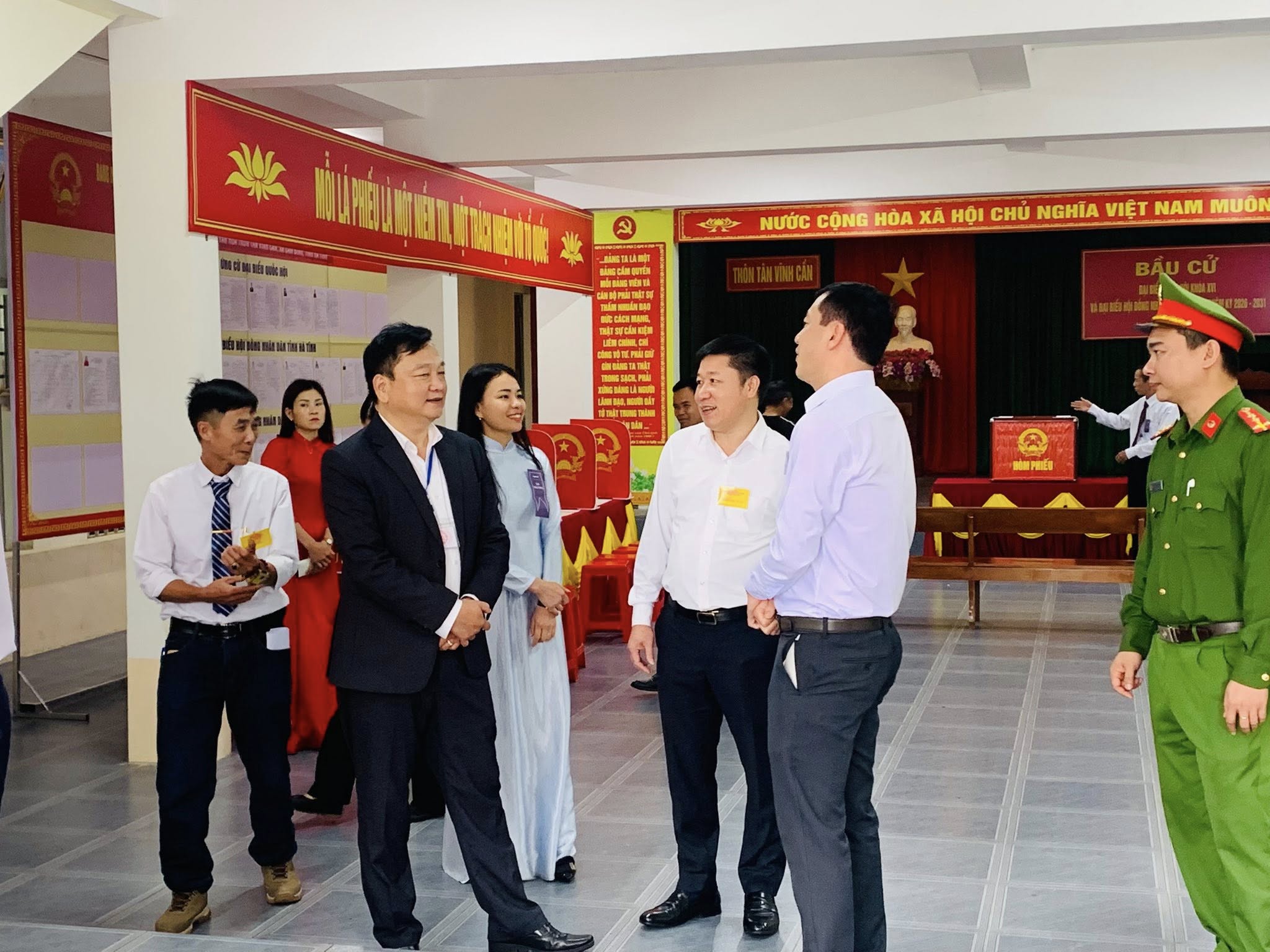 Không khí tại các khu vực bỏ phiếu diễn ra trang nghiêm, dân chủ; các thành viên tổ bầu cử thực hiện tốt nhiệm vụ, hướng dẫn cử tri bỏ phiếu theo đúng trình tự, đảm bảo an ninh trật tự và an toàn trong suốt quá trình diễn ra bầu cử.