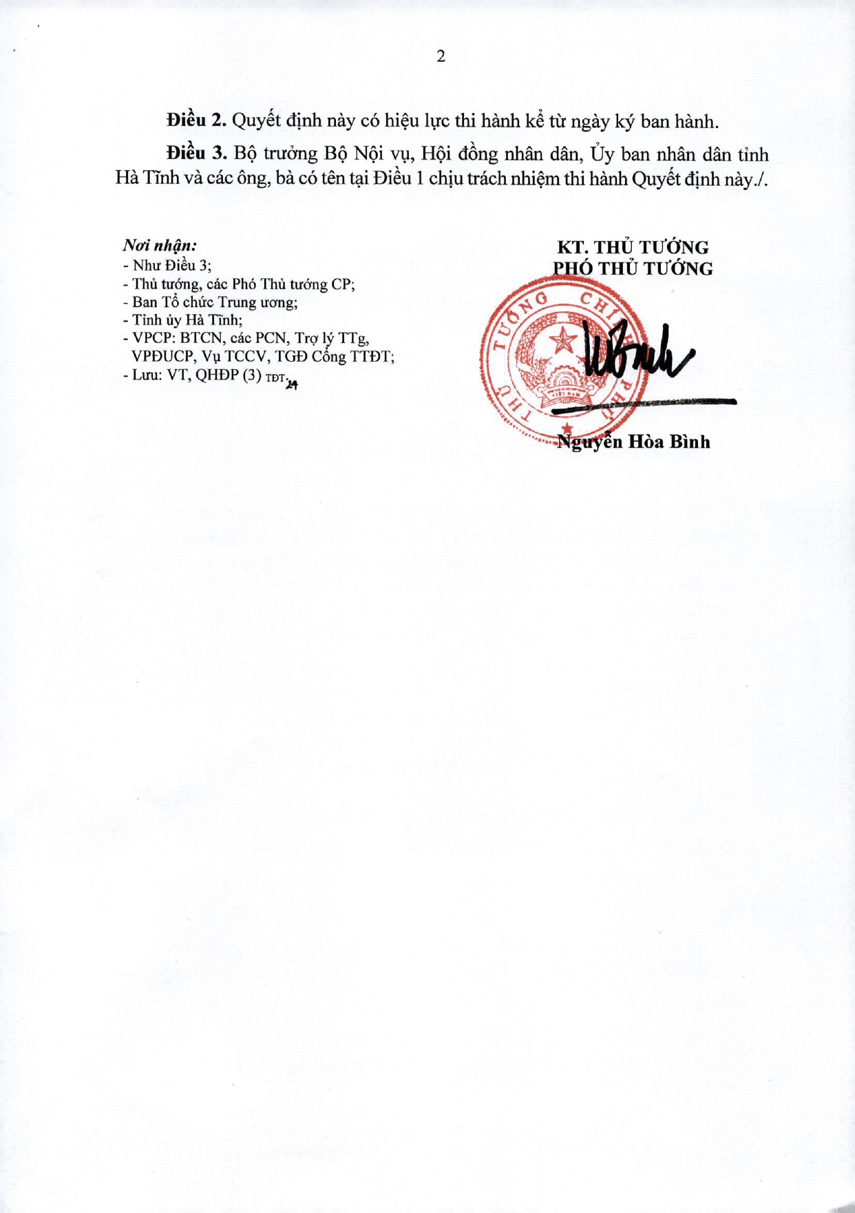 Phó Thủ tướng Chính phủ vừa ký ban hành quyết định phê chuẩn kết quả bầu Phó Chủ tịch UBND tỉnh Hà Tĩnh nhiệm kỳ 2026-2031 đối với ông Trần Báu Hà, ông Hồ Huy Thành, bà Nguyễn Thị Nguyệt.