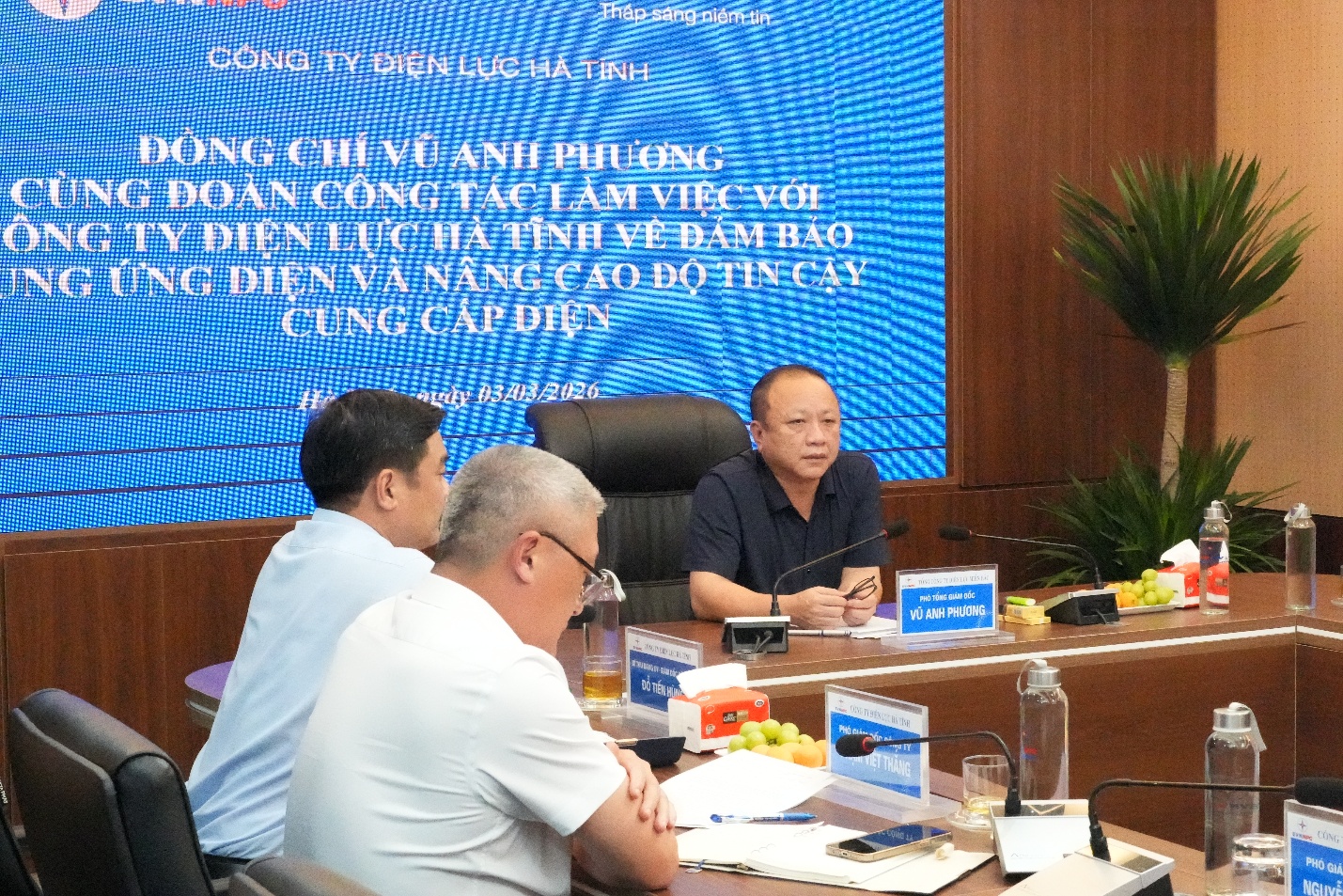 Chiều 03/3/2026, tại trụ sở Công ty Điện lực (CTĐL) Hà Tĩnh, ông Vũ Anh Phương - Phó Tổng Giám đốc Tổng công ty Điện lực miền Bắc (EVNNPC) cùng đoàn công tác đã có buổi làm việc với Công ty về công tác nâng cao độ tin cậy cung cấp điện trên địa bàn tỉnh.