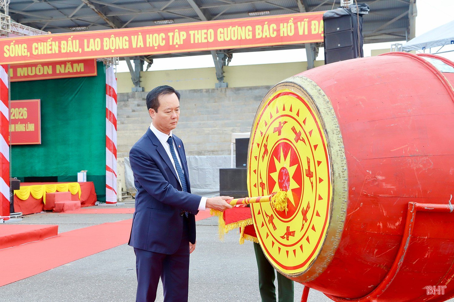Phó Chủ tịch Thường trực UBND tỉnh Trần Báu Hà đánh trống mở hội giao quân năm 2026.