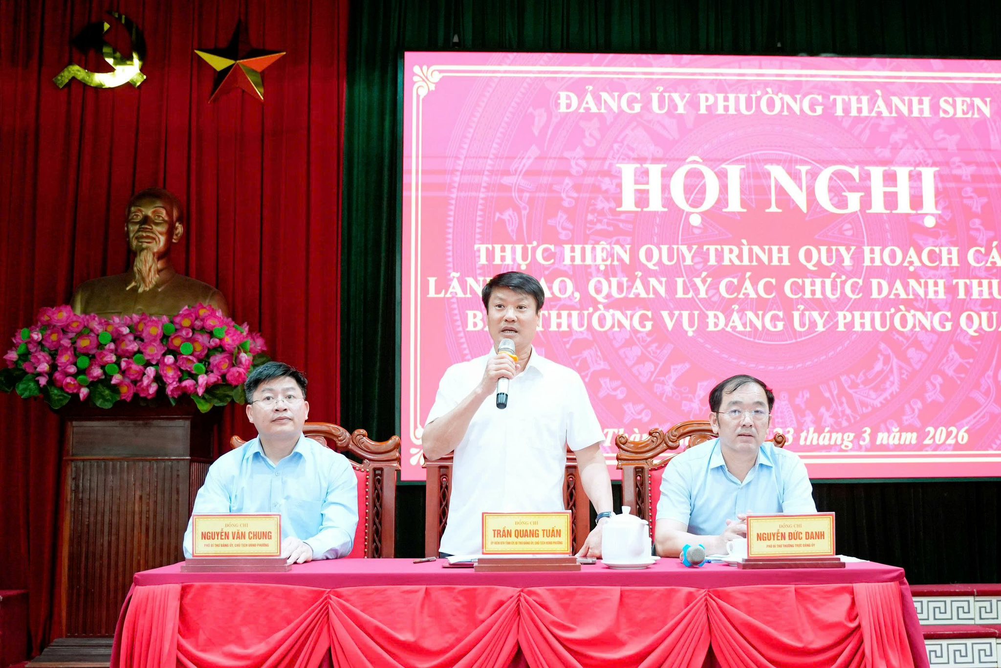 Sáng ngày 23/2, Đảng ủy phường Thành Sen tổ chức Hội nghị thực hiện quy trình quy hoạch cán bộ lãnh đạo, quản lý các chức danh thuộc diện Ban Thường vụ Đảng ủy phường quản lý cho các nhiệm kỳ 2025–2030, 2026–2031 và định hướng các nhiệm kỳ tiếp theo 2030–2035, 2031–2036. Đây là bước quan trọng nhằm chuẩn bị tốt công tác nhân sự, đảm bảo bộ máy lãnh đạo của phường hoạt động hiệu lực, hiệu quả trong giai đoạn mới.