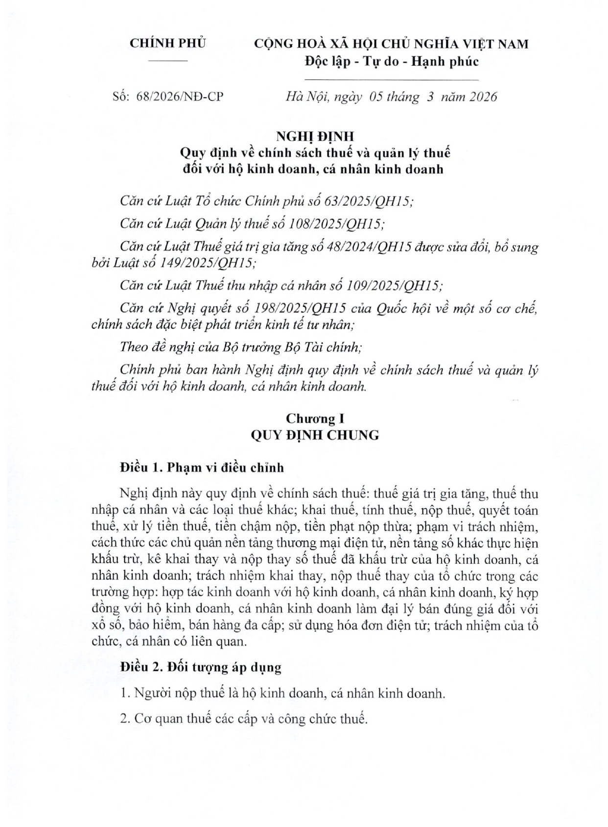 Quy định về chính sách thuế và quản lý thuế đối với hộ kinh doanh, cá nhân kinh doanh