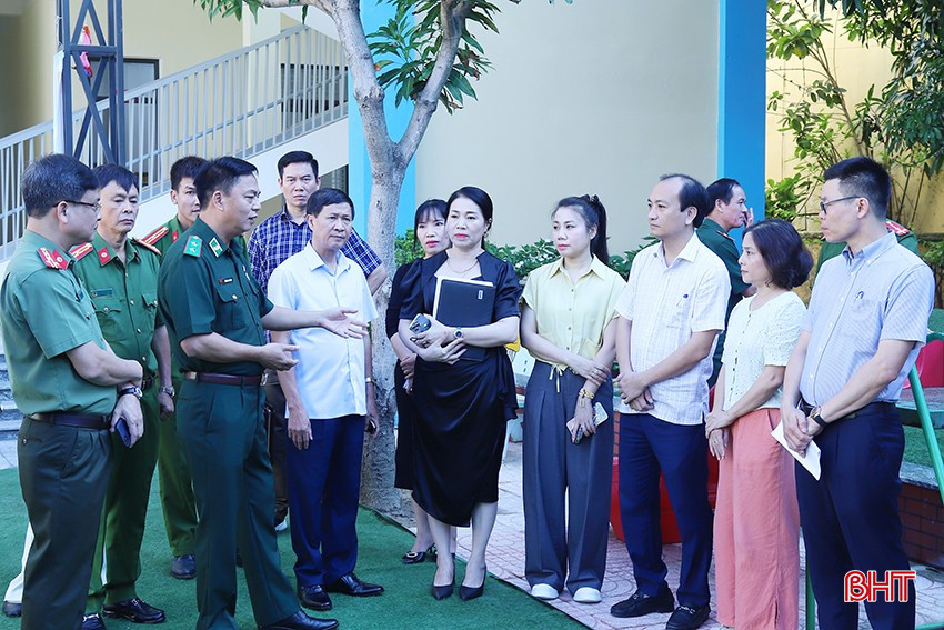 Đoàn khảo sát của Ủy ban Quốc phòng và An ninh của Quốc hội khảo sát phục vụ tiếp thu, chỉnh lý dự thảo Luật Phòng cháy, chữa cháy và cứu nạn, cứu hộ (PCCC&CNCH) tại Trường Mầm non Thạch Linh (TP Hà Tĩnh).