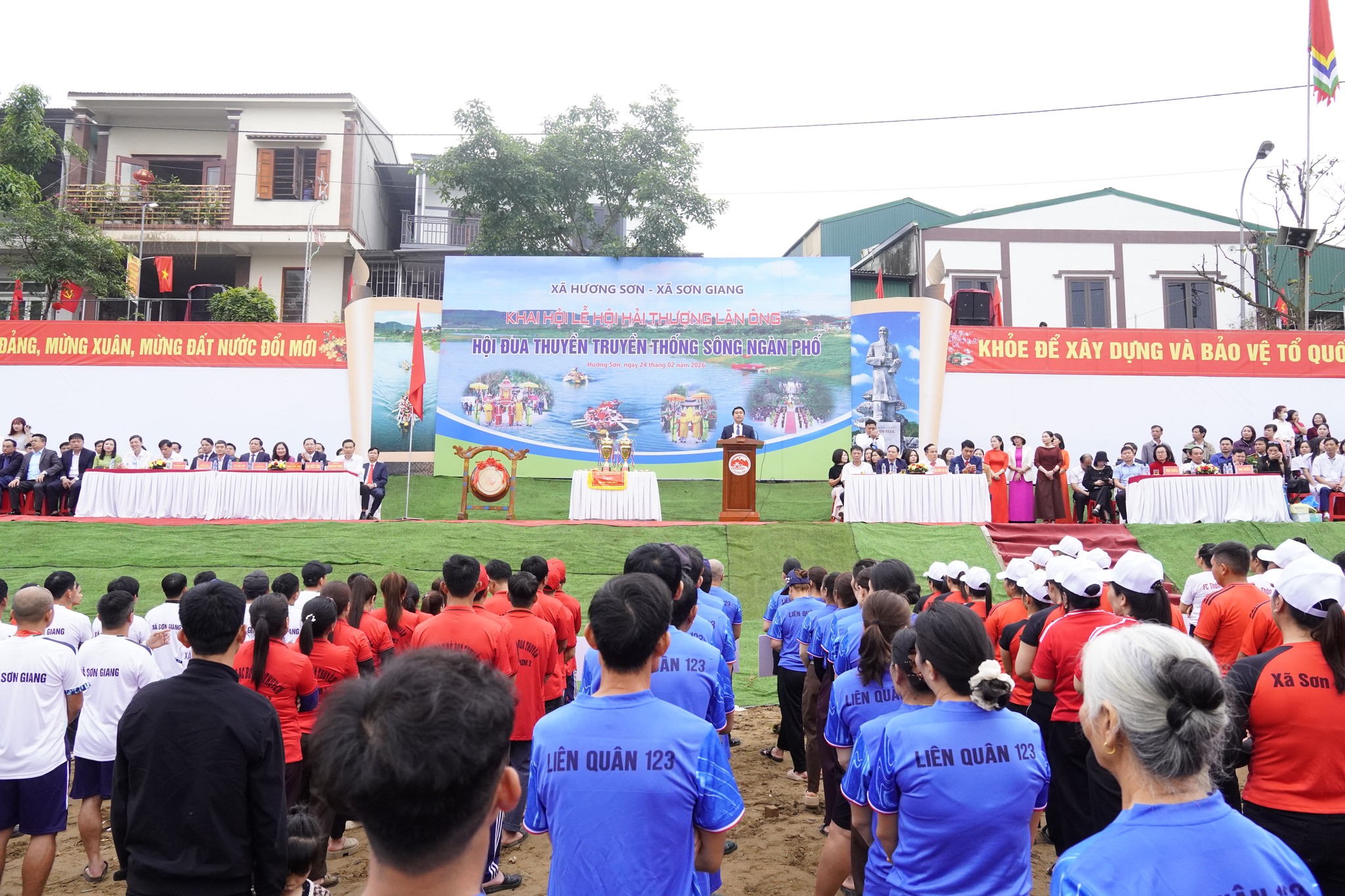 Sáng 24/2/2026, trong không khí rộn ràng những ngày đầu xuân, xã Hương Sơn phối hợp xã Sơn Giang long trọng tổ chức khai hội Lễ hội Hải Thượng Lãn Ông gắn với hội đua thuyền truyền thống trên sông Ngàn Phố. Sự kiện thu hút đông đảo đại biểu, Nhân dân và du khách thập phương, mở màn chuỗi hoạt động văn hóa – thể thao đặc sắc năm 2026.