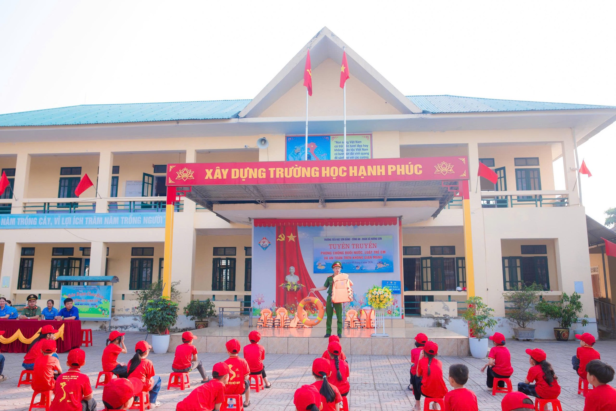 Ngày 09/4/2026, Công an xã Hương Sơn phối hợp với Đoàn xã Hương Sơn và Trường Tiểu học Sơn Bằng tổ chức buổi tuyên truyền chuyên đề “Phòng, chống đuối nước, Luật Trẻ em và an toàn trên không gian mạng” cho 18 giáo viên và 208 học sinh nhà trường. Đây là hoạt động thiết thực nhằm nâng cao nhận thức, trang bị kỹ năng sống cần thiết cho học sinh, đặc biệt trong bối cảnh nguy cơ tai nạn đuối nước và các rủi ro trên không gian mạng ngày càng gia tăng.