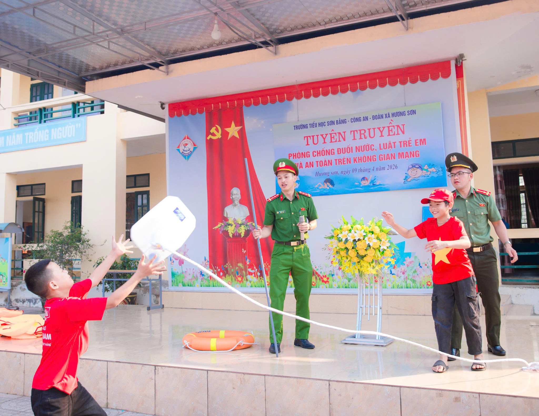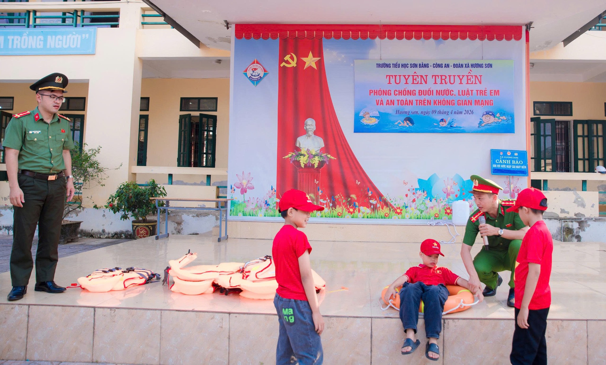 Ngày 09/4/2026, Công an xã Hương Sơn phối hợp với các đơn vị liên quan tổ chức tuyên truyền về phòng, chống đuối nước, Luật Trẻ em và an toàn trên không gian mạng, góp phần trang bị kiến thức, kỹ năng thiết thực cho học sinh Trường Tiểu học Sơn Bằng.