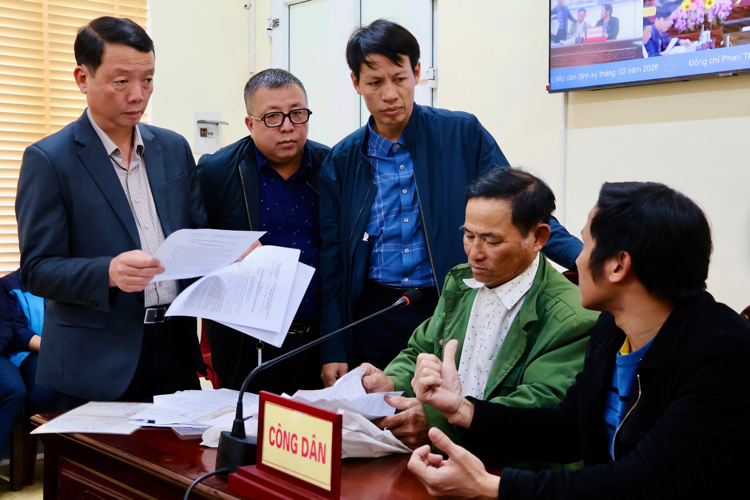 Các đồng chí chủ trì cũng đã tiếp công dân Ngô Đức Thắng ở thôn Khe Giao 1, xã Toàn Lưu, đề nghị cấp giấy chứng nhận quyền sử dụng đất, cho phép đầu tư xây dựng trên thửa đất được chính quyền địa phương giao; công dân Nguyễn Kiêm ở Tổ dân phố 3 – Nam Hồng, phường Nam Hồng Lĩnh đề nghị cấp giấy chứng nhận quyền sử dụng đất đối với thửa đất đã được UBND xã Thạch Ngọc cũ giao từ năm 1995; công dân Dương Trí Nhạc cùng các hộ dân ở thôn Liên Mỹ, xã Đồng Tiến phản ánh về vi phạm thu chi tài chính của thôn; công dân Phan Thị Thanh Hương, Tổ dân phố 2 – Bắc Hà, phường Thành Sen phản ánh việc UBND Thành phố Hà Tĩnh (cũ) chuyển quyền sử dụng đất trái pháp luật.