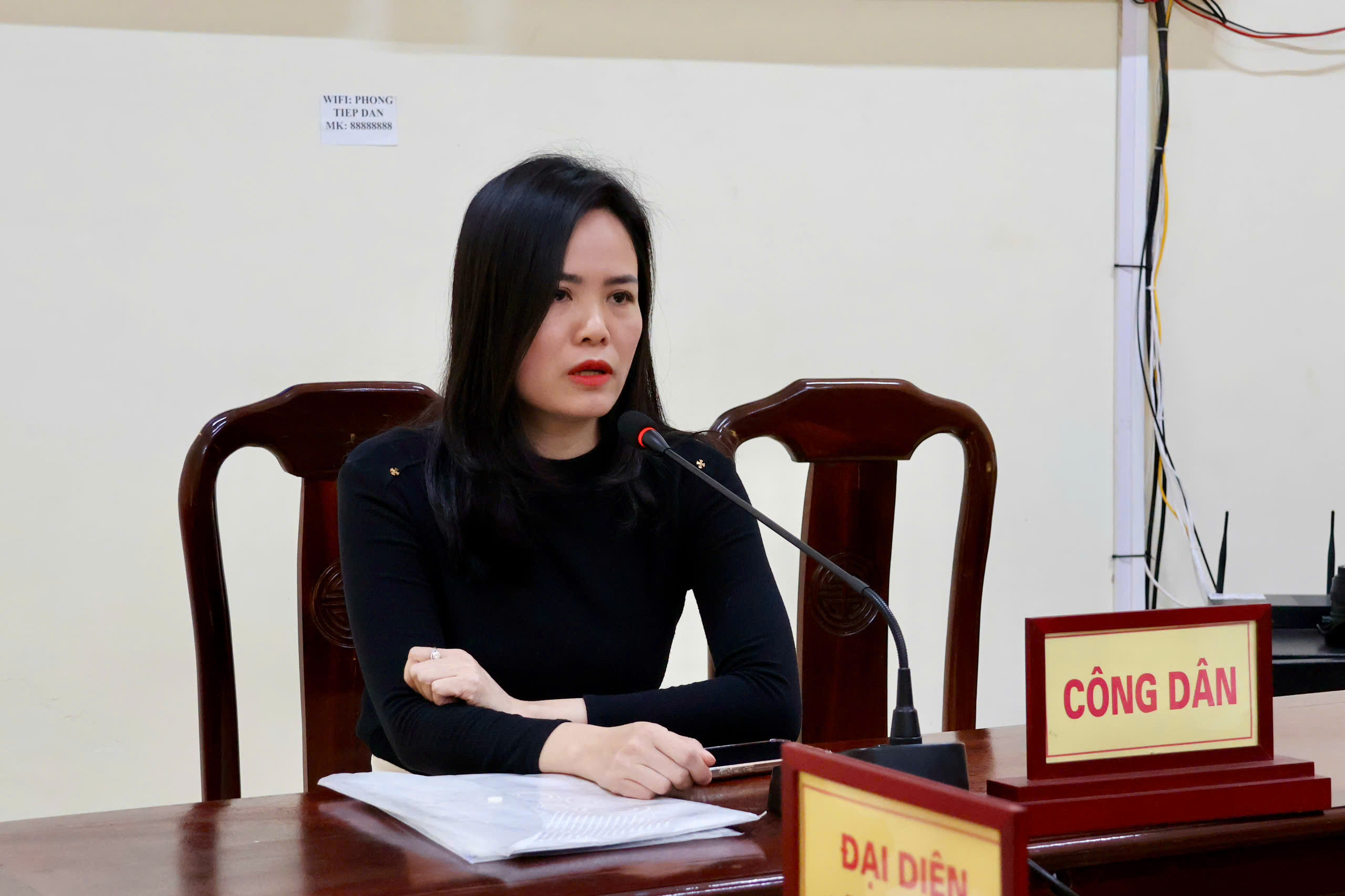 Các công dân: Dương Trí Nhạc, Lê Thị Huế (áo trắng), Nguyễn Thị Mỹ Dung trình bày kiến nghị tại phiên tiếp công dân định kỳ tháng 2/2026.