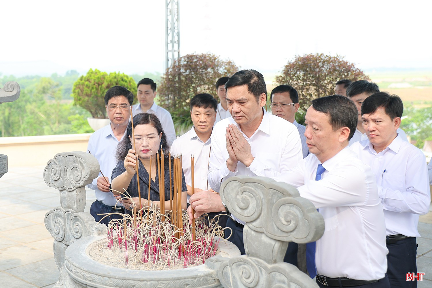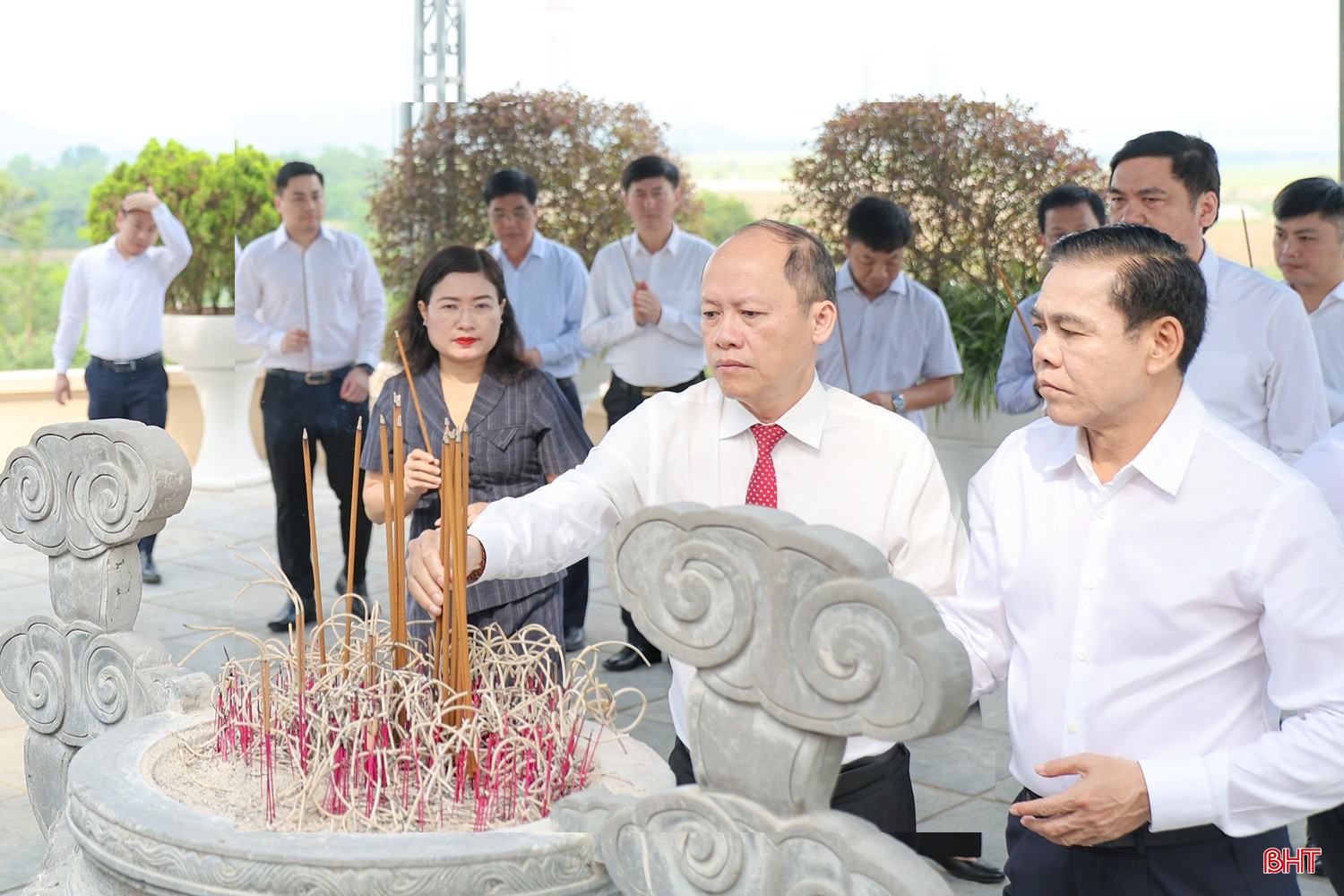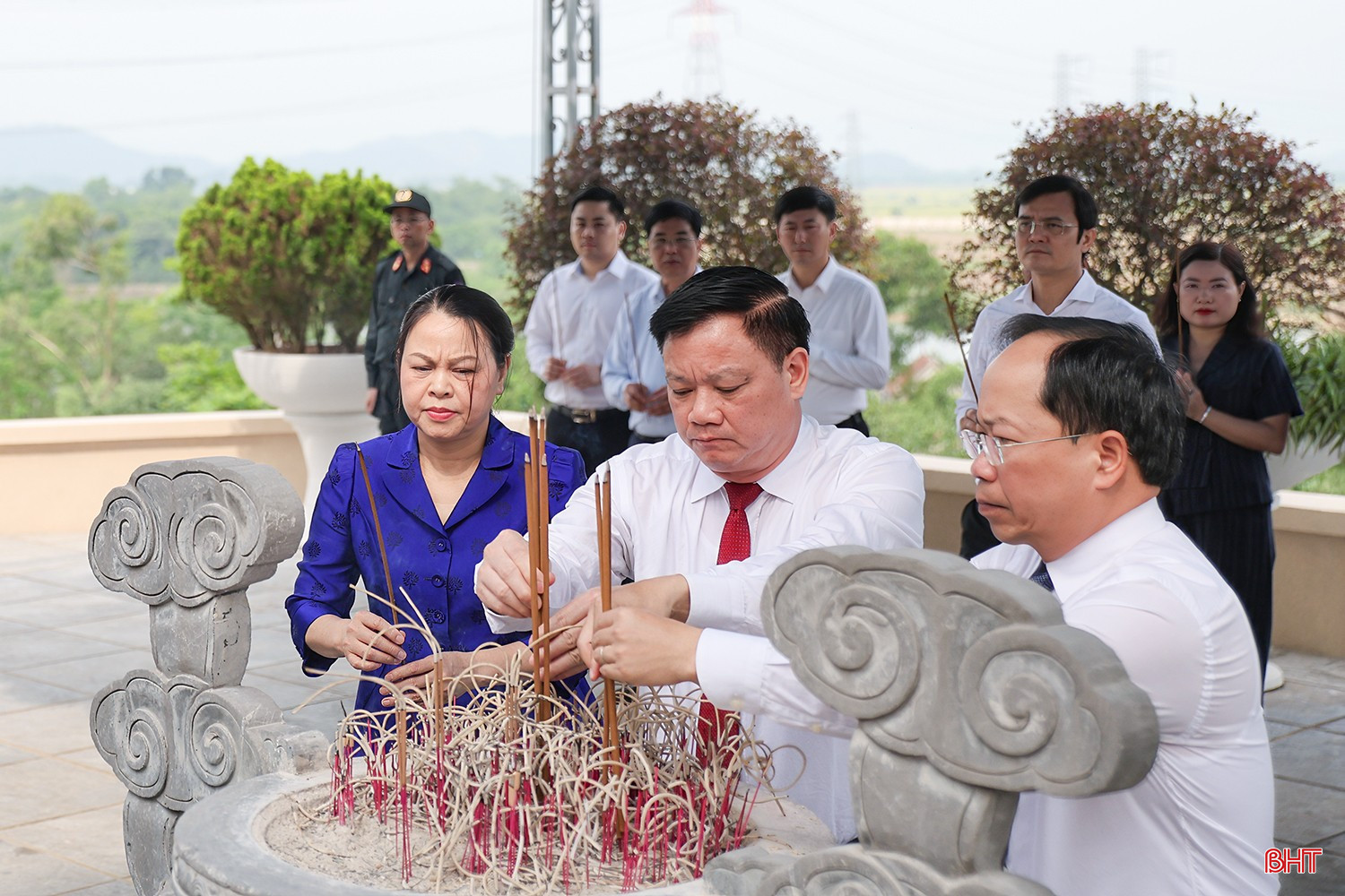 Đồng chí Trần Cẩm Tú - Ủy viên Bộ Chính trị, Thường trực Ban Bí thư và đoàn công tác bày tỏ lòng thành kính trước những công lao to lớn, sự hy sinh cao cả của Tổng Bí thư Trần Phú, các anh hùng liệt sỹ đối với sự nghiệp cách mạng của Đảng, của dân tộc cũng như nghĩa vụ quốc tế.