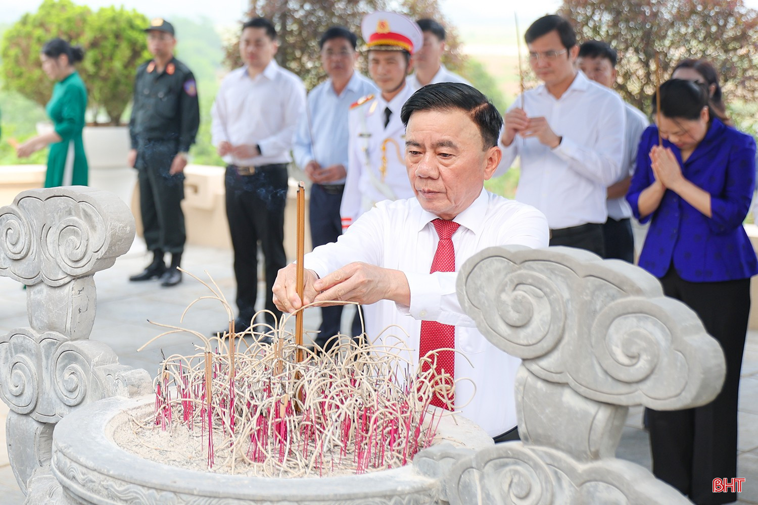 Trước anh linh các anh hùng liệt sỹ, đoàn công tác do đồng chí Trần Cẩm Tú dẫn đầu bày tỏ lòng biết ơn sâu sắc đối với những hy sinh to lớn vì độc lập, tự do của dân tộc và nghĩa vụ quốc tế cao cả của các anh hùng liệt sỹ.