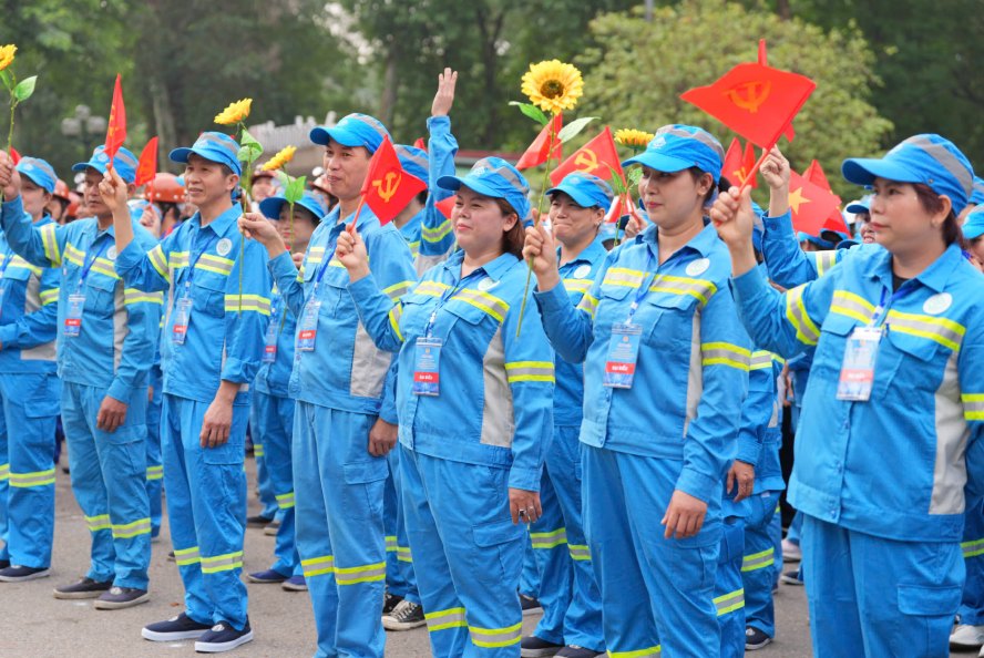 Từ 5h30, các CNLĐ thuộc 12 đơn vị gồm: LĐLĐ TP Hà Nội; Công đoàn Công an nhân dân; Công đoàn Tập đoàn Năng lượng quốc gia Việt Nam; Công đoàn Ngân hàng Việt Nam; Công đoàn Dệt may Việt Nam; Công đoàn Điện lực Việt Nam; Công đoàn Giáo dục Việt Nam; Công đoàn Than - Khoáng sản Việt Nam; Công đoàn Công Thương Việt Nam; Công đoàn Xây dựng Việt Nam; Công đoàn Y tế Việt Nam; Trường Đại học Công đoàn chia thành 4 khối diễu hành có mặt tại Công viên Thống Nhất (Hà Nội).