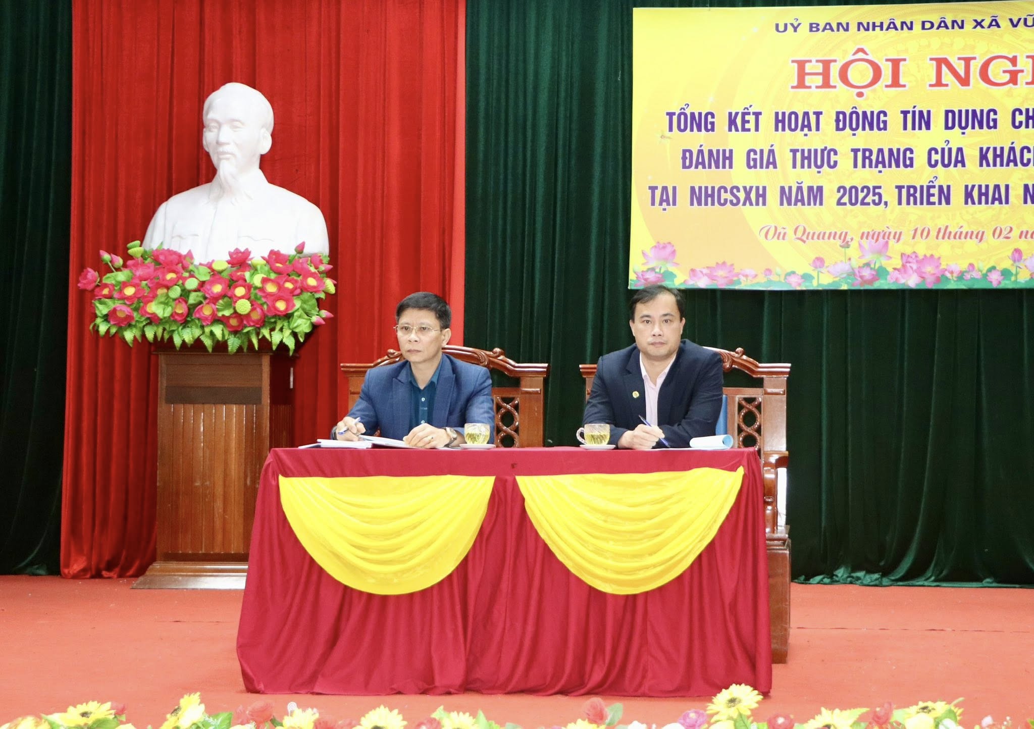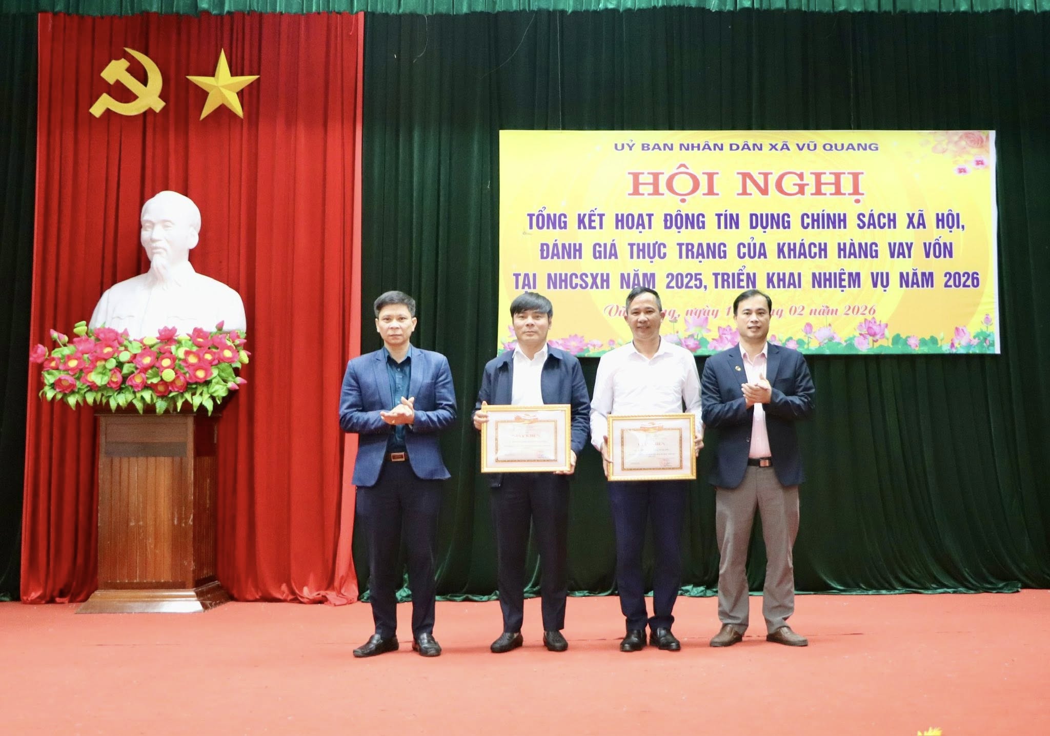 Chiều 10/02, UBND xã Vũ Quang tổ chức Hội nghị tổng kết hoạt động tín dụng chính sách xã hội năm 2025, đánh giá kết quả thực hiện các chương trình cho vay ưu đãi và thực trạng nợ của khách hàng vay vốn tại Ngân hàng Chính sách xã hội trên địa bàn.