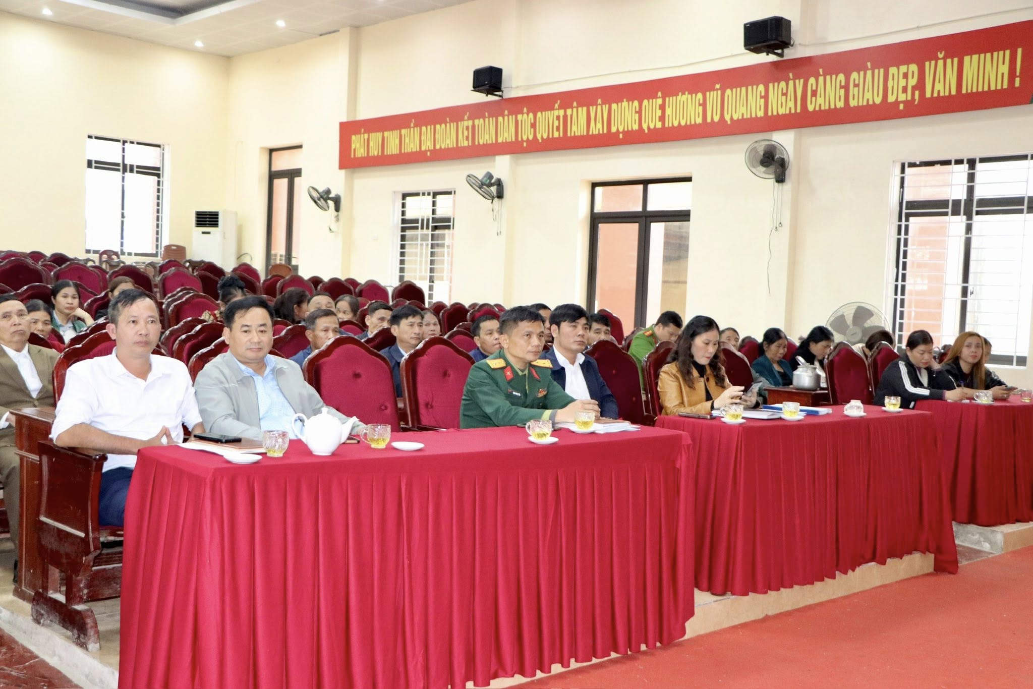 Tham dự hội nghị có đồng chí Trần Văn Trà – Ủy viên Ban Thường vụ, Phó Chủ tịch UBND xã; đại diện lãnh đạo Ngân hàng Chính sách xã hội xã Vũ Quang; cùng lãnh đạo Ủy ban MTTQ Việt Nam xã, các hội, đoàn thể, các phòng, ban chuyên môn và Tổ trưởng Tổ tiết kiệm và vay vốn trên địa bàn.