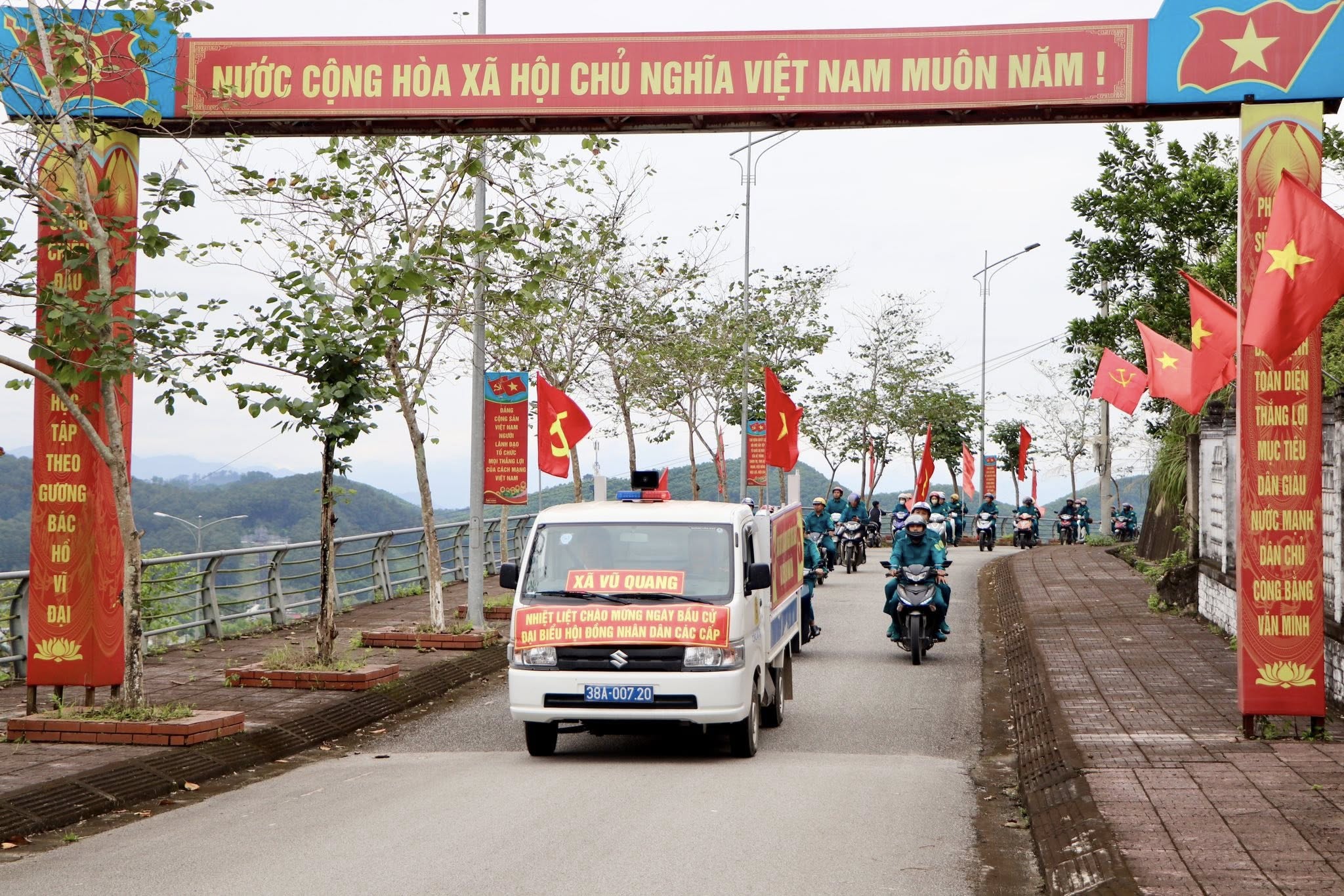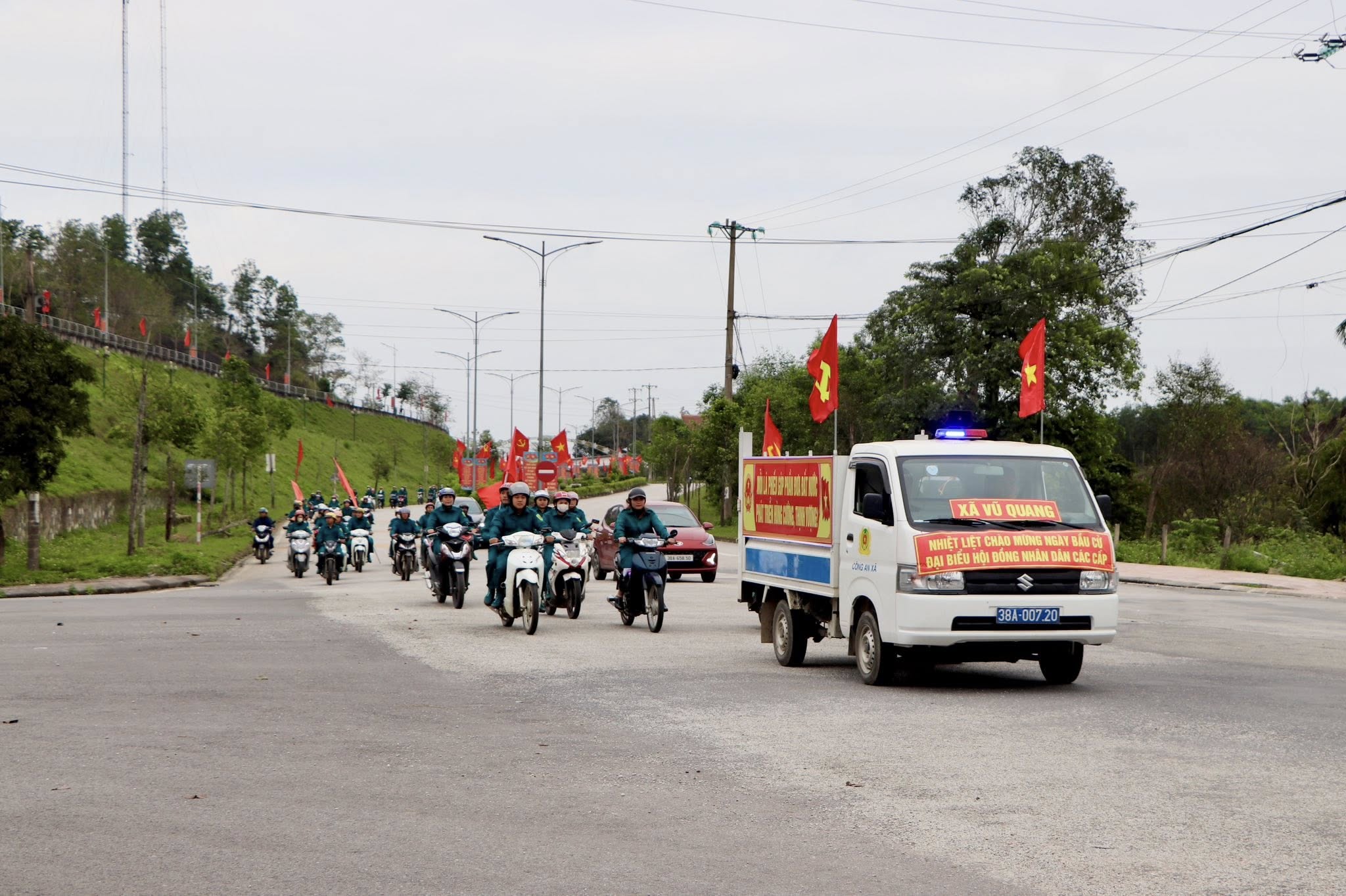Đợt ra quân tuyên truyền lưu động không chỉ tạo khí thế sôi nổi trên khắp các tuyến đường của xã Vũ Quang mà còn góp phần khơi dậy tinh thần đoàn kết, trách nhiệm của mỗi cử tri đối với sự kiện chính trị quan trọng của đất nước.