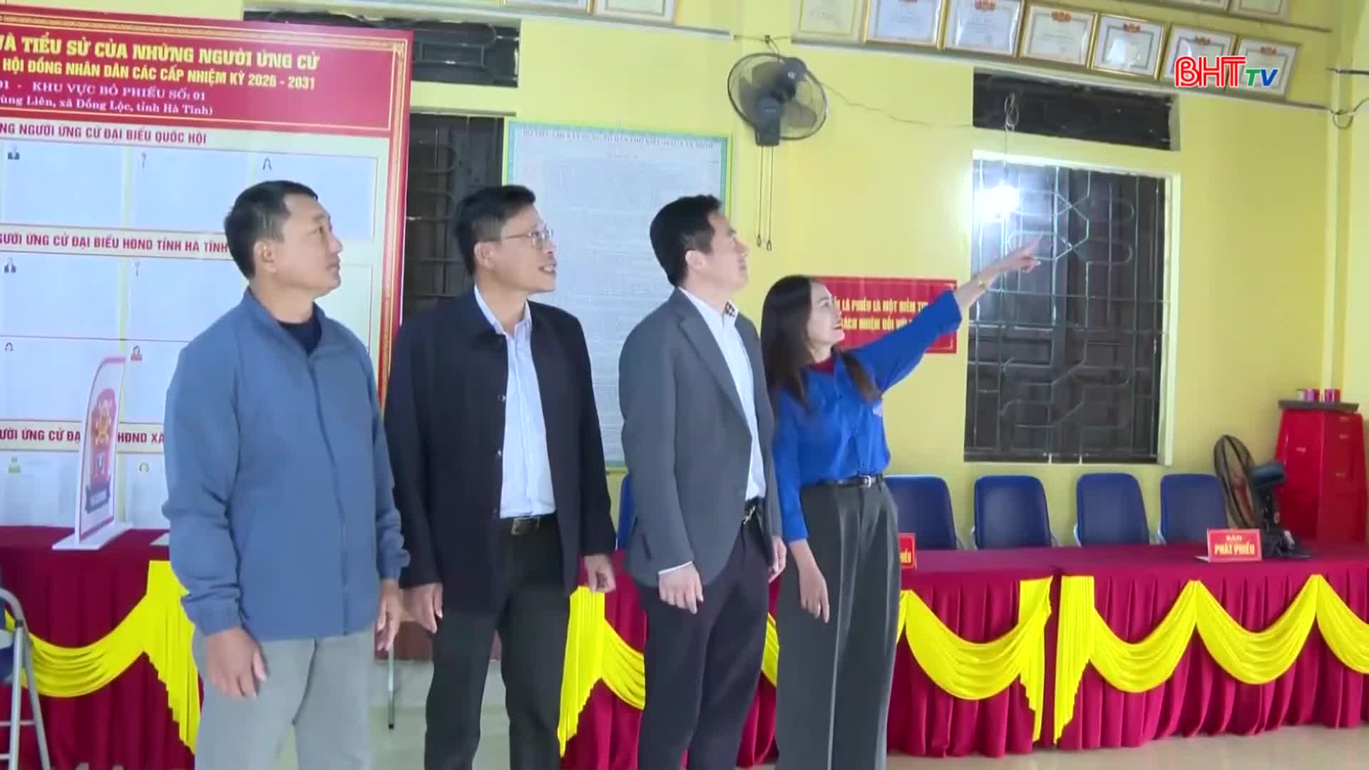 Lãnh đạo xã Đồng Lộc kiểm tra công tác chuẩn bị cho ngày bầu cử trên địa bàn. Ảnh BHT
