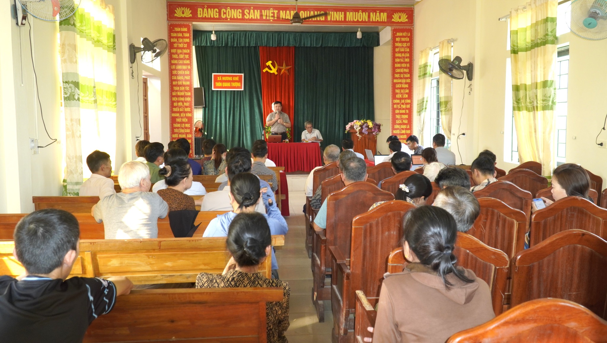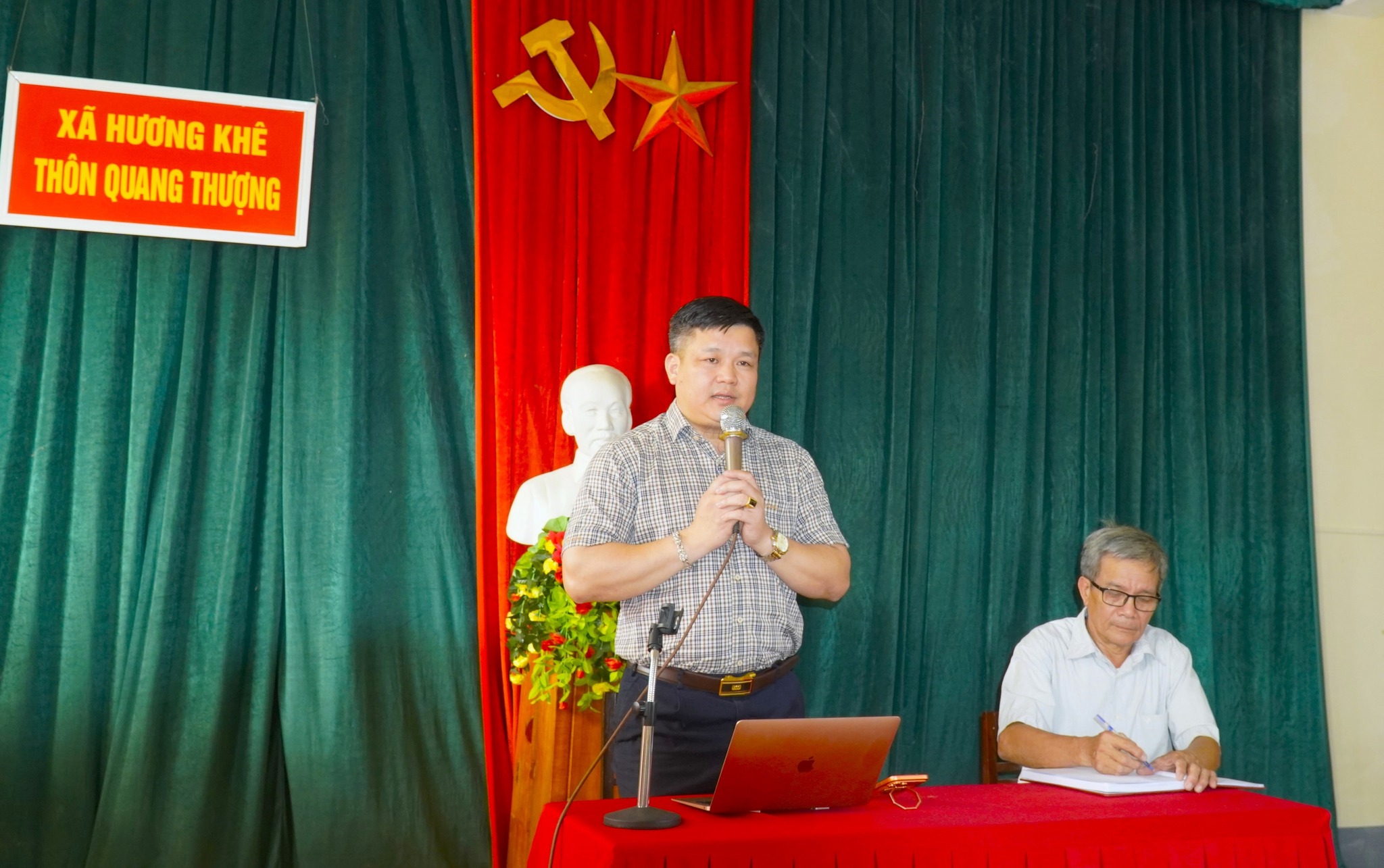 Chiều ngày 13/4/2026, tại Nhà văn hóa thôn Quang Thượng, UBND xã Hương Khê đã tổ chức buổi làm việc với các hộ dân có đất nằm trong phạm vi ảnh hưởng của dự án Khu dân cư Phú Phong. Đồng chí Trần Quốc Bảo – Chủ tịch UBND xã chủ trì buổi làm việc.