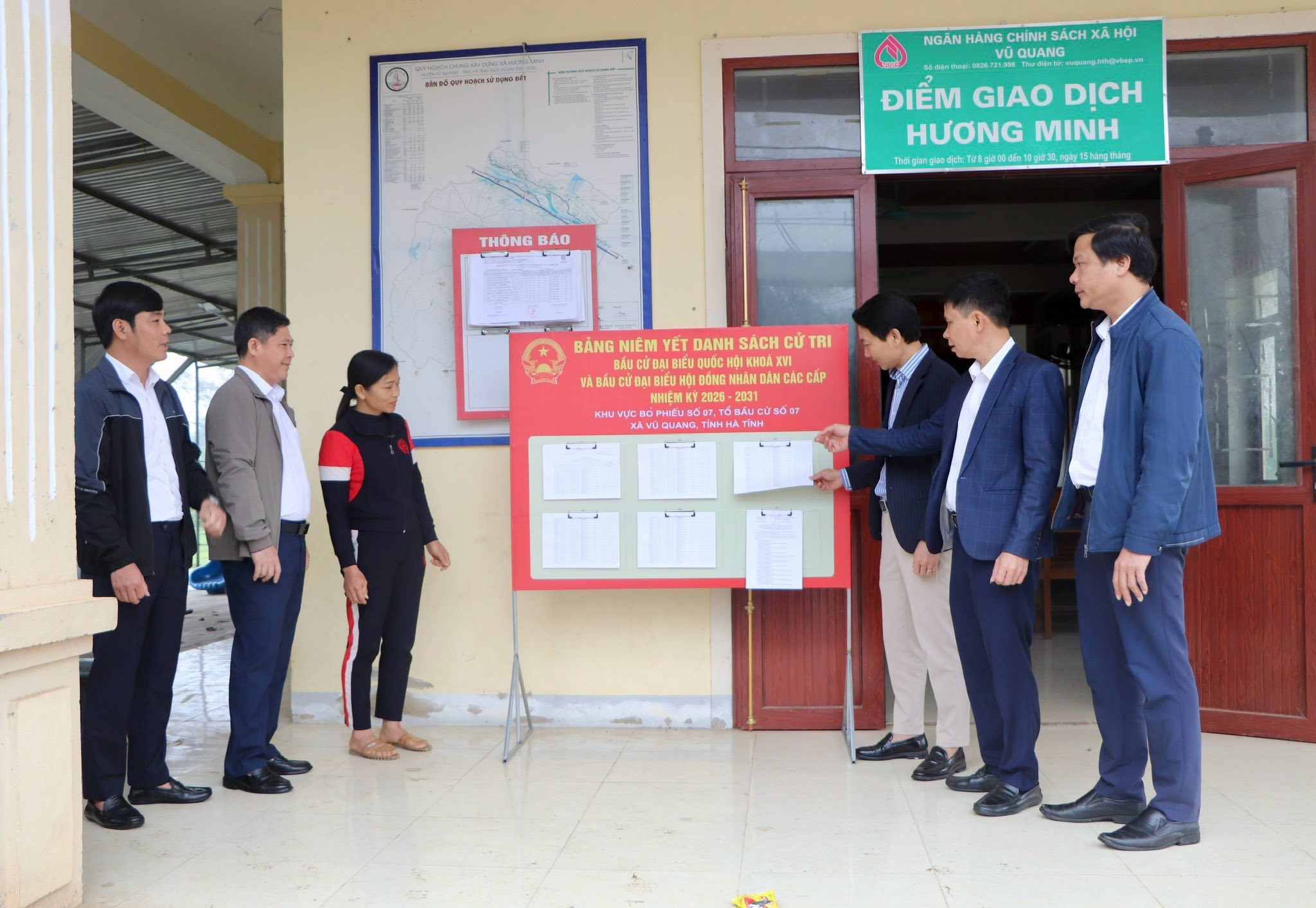 Theo kế hoạch, xã Vũ Quang thành lập 05 đơn vị bầu cử và 31 khu vực bỏ phiếu. Để bảo đảm quyền và nghĩa vụ của cử tri được thực hiện đầy đủ, đúng quy định, đoàn kiểm tra tập trung rà soát việc niêm yết danh sách cử tri, danh sách và tiểu sử tóm tắt của người ứng cử tại các điểm bỏ phiếu, nhà văn hóa các tổ dân phố và những địa điểm sinh hoạt cộng đồng.