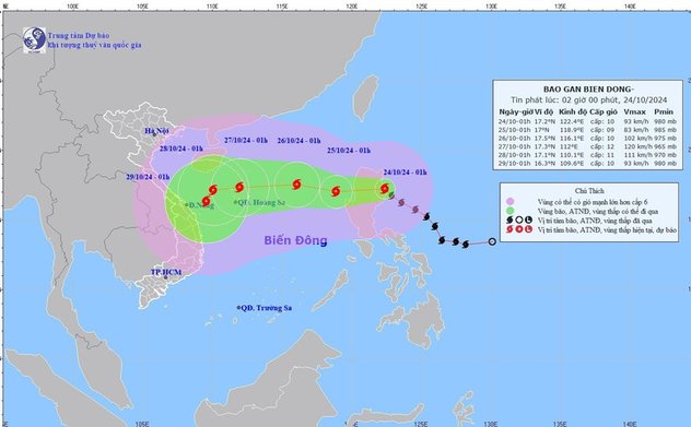 Theo Trung tâm Dự báo KTTV Quốc gia, vài hồi 13h ngày 23/10, cơn bão TRAMI (tiếng việt là Trà Mi), có vị trí tâm ở vào khoảng 16,2 độ Vĩ Bắc; 123,6 độ Kinh Đông, trê