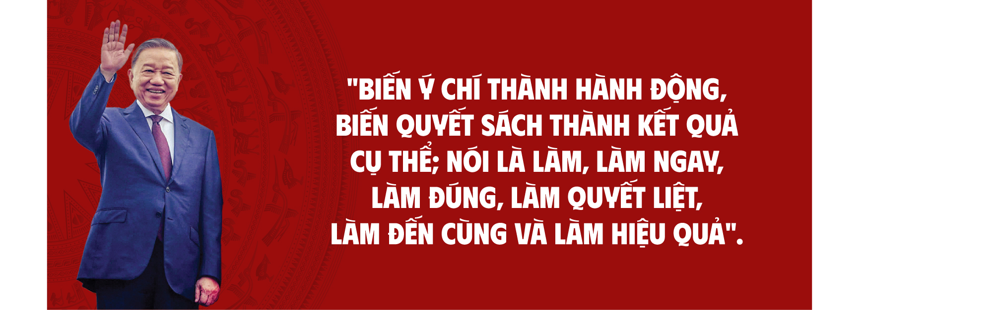 Tinh thần xuyên suốt của nhiệm kỳ Đại hội XIV được Tổng Bí thư Tô Lâm khái quát: "Biến ý chí thành hành động, biến quyết sách thành kết quả cụ thể; nói là làm, làm ngay, làm đúng, làm quyết liệt, làm đến cùng và làm hiệu quả".