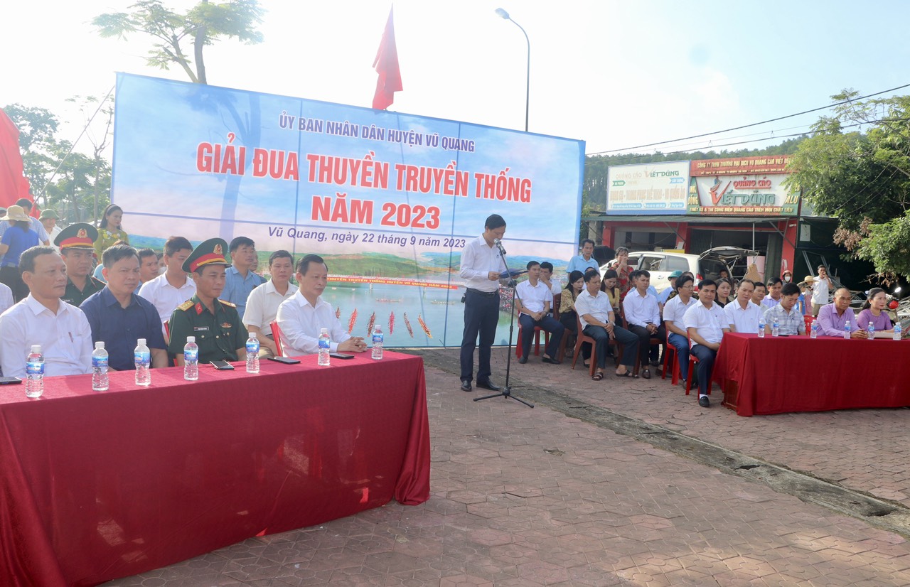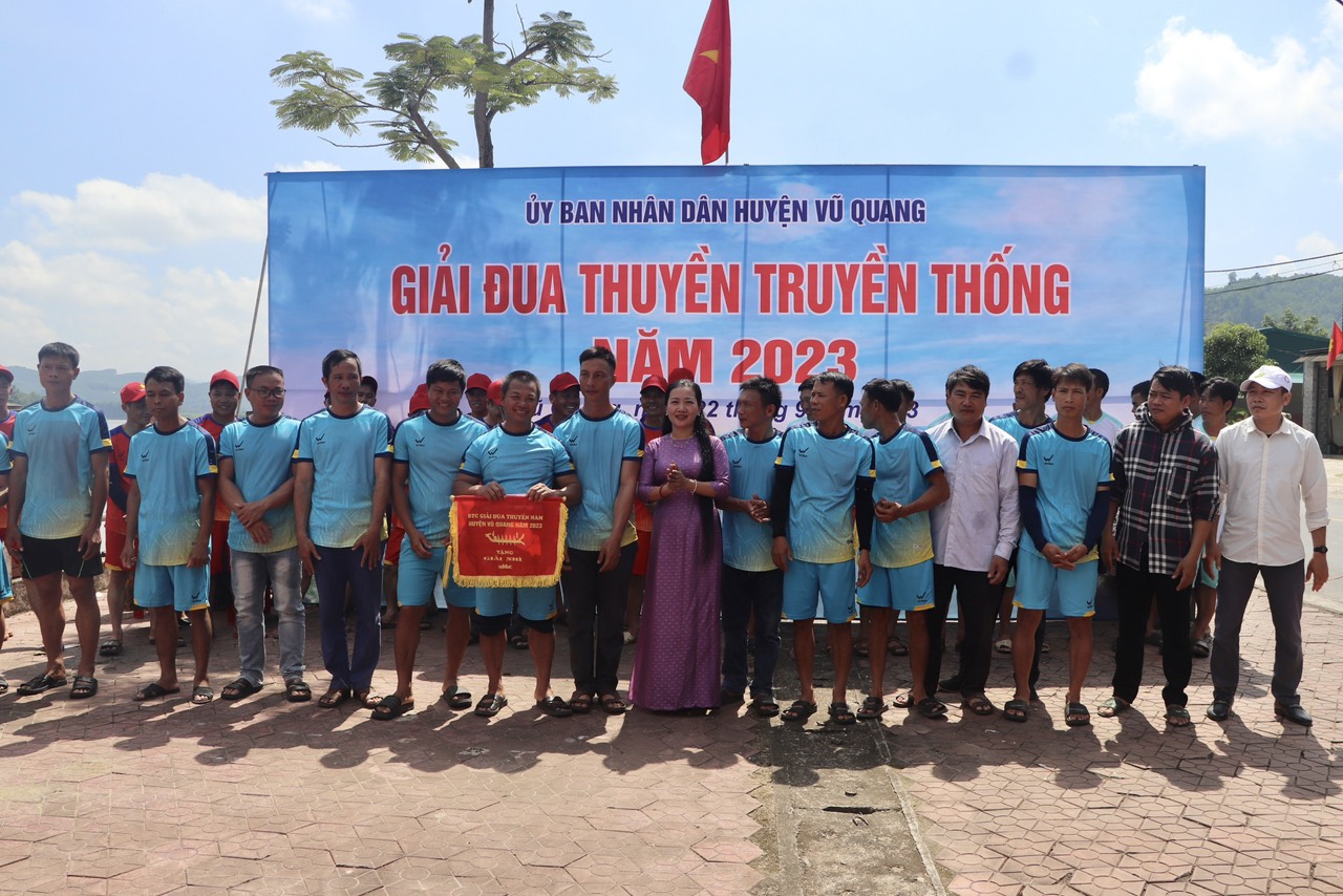 Tham gia giải đua thuyền truyền thống lần thứ V/ 2023 huyện Vũ Quang có 10 đội nam đến từ 10 xã, thị trấn, với 150 vận động viên.