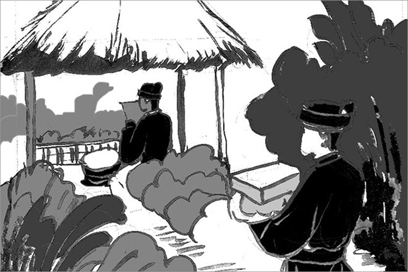 Nguyễn Thiếp đã 3 lần từ chối lời mời của Nguyễn Huệ. Đến tháng 6/1788, khi Nguyễn Huệ đem quân ra Bắc lần thứ hai, đến đất Nghệ An, ông đã cử Cẩn Tín hầu Nguyễn Quang Đại mang thư đến mời Nguyễn Thiếp đến hội kiến. Lần này, Nguyễn Thiếp đồng ý ra giúp vua Quang Trung. Tranh minh họa Internet.