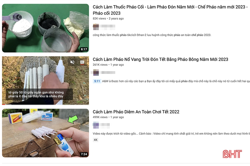 Với từ khóa “hướng dẫn cách chế tạo pháo" trên Youtube hay bất cứ trang Internet nào khác, hàng loạt kết quả được hiển thị.