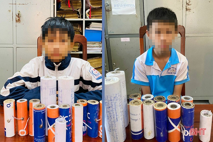 Cũng trong ngày 15/12, lực lượng Công an xã Cẩm Thịnh (Cẩm Xuyên) phát hiện 3 em học sinh H.K.H.; N.V.B.; B.Q.T. (đều SN 2010), trú tại xã Cẩm Thịnh đang giấu trong người 4 khối hình trụ tròn nghi là pháo. Qua điều tra, làm việc, các học sinh trên đã thừa nhận hành vi mua tiền chất trên mạng xã hội về tự chế pháo nổ.